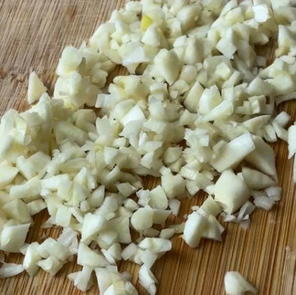 Start by finely chopping your garlic (I used 5 cloves because I love that strong flavor, but you can adjust to your taste).